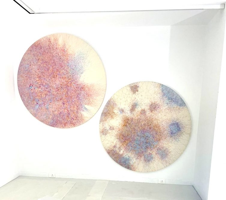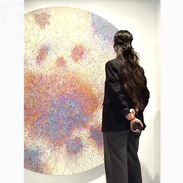 Abu Dhabi Art Fair | Manarat al Sadiyaat | Aicon Contemporary | 2025 The Armory Show | New York | Aicon Contemporary | 2025 Entropic | Series | Art Dubai & India Art Fair | 2025 India Art Fair | New Delhi | 2024 British Textile Biennale | Lancashire, UK | 2023 Nexus | series of works on canvas | 2022 British Textile Biennial | 2025 | Filamentous | Wall Installation | Whitaker Museum | Lancashire, UK Art SG | Marina Bay Sands, Singapore | Art Fair | 2025 Stochastic | works on panels | 2024-25 Echo | Wall Installation | Gallery Aicon Contemporary | NYC | 2023 Solo Exhibition | Aicon Contemporary | New York | 2023 Echo | series of works on paper and canvas | 2021 Filamentous | process | artefacts | works on paper | BTB UK & Abu Dhabi Art Fair 2025 Gallery Lakeeren Contemporary | Show - Cosmic Frequencies | Mumbai | 2025 Dots for Pause | Sakshi Gallery | Mumbai | 2025 Art Mumbai | 2023 Visiting Artist Fellowship | Harvard University | Spring 2023 Coalesced | series of works on canvas | 2020-21
